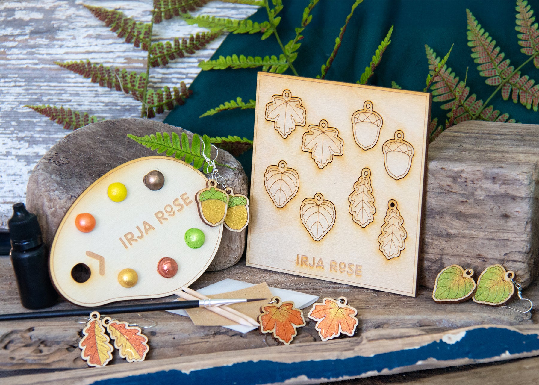You will find everything you need to create 4 beautiful sets of earrings with designs from our UK woodlands: the maple, lime and oak leaf, and the immediately recognisable acorn.